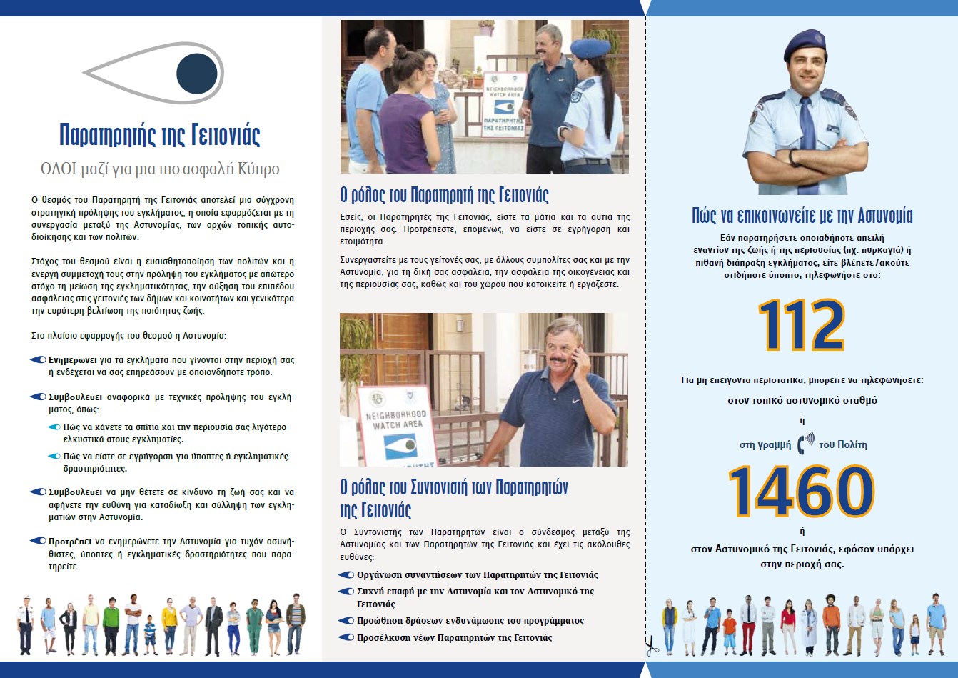 Εσείς οι Παρατηρητές της Γειτονιάς προτρέπεστε να είσαστε σε εγρήγορση, είστε τα μάτια και τα αυτιά της Αστυνομίας η οποία δεν μπορεί να είναι συνεχώς σε κάθε γωνιά μέρα και νύχτα.