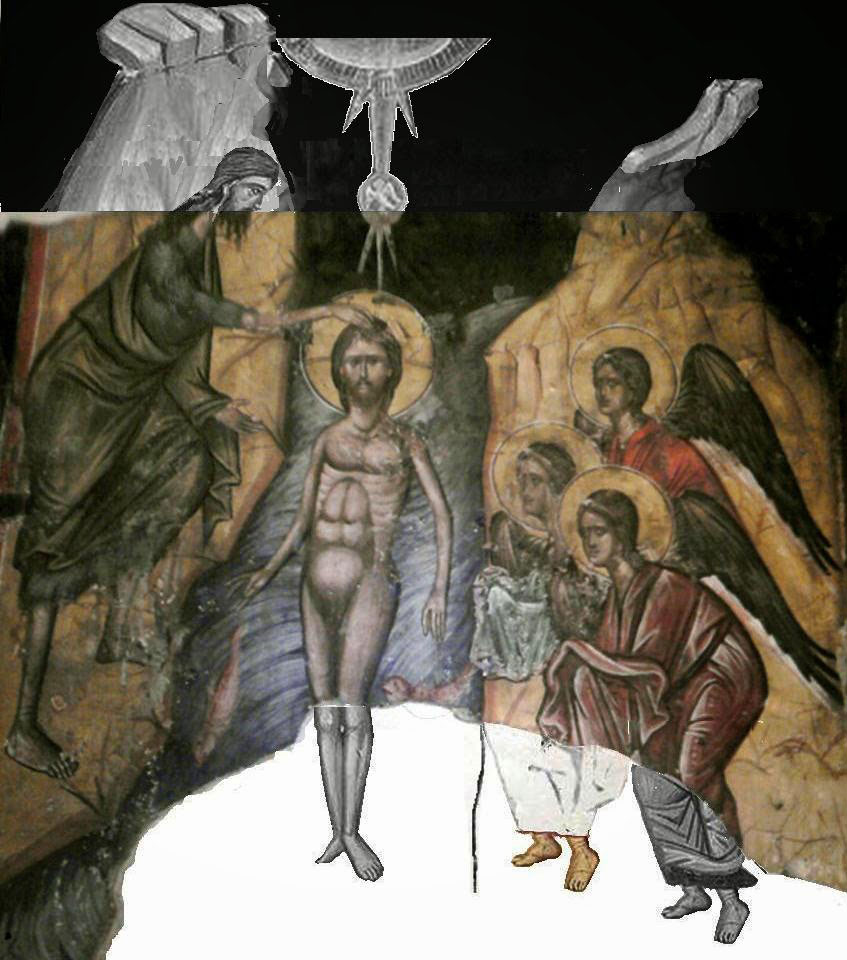 Distinguished from other icons by its artistic technique and value, it portrays Christ standing in the middle of the Jordan, naked and adorned with the Adamic nakedness, thereby reflecting the glorious garment of Paradise with which humanity should be clothed. One of his feet is placed forward to demonstrate his ultimate initiative to be baptized by John, while also concealing his nakedness, which may shame the thoughts of sinners.