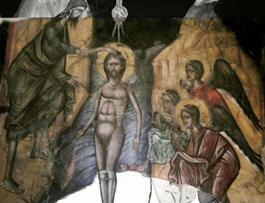 Distinguished from other icons by its artistic technique and value, it portrays Christ standing in the middle of the Jordan, naked and adorned with the Adamic nakedness, thereby reflecting the glorious garment of Paradise with which humanity should be clothed. One of his feet is placed forward to demonstrate his ultimate initiative to be baptized by John, while also concealing his nakedness, which may shame the thoughts of sinners.
